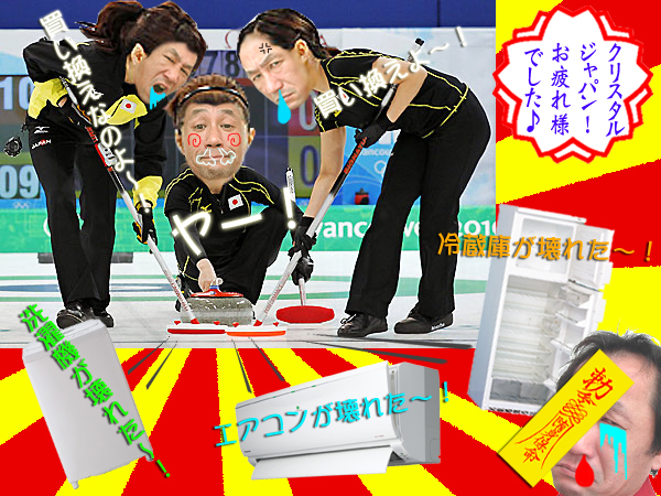 ■仕事を終え家に帰れば、また奥様が大慌てでした。何回も何回も復帰することを願い、苦戦していましたが、それもむなしく・・・洗濯機、壊れました。「洗濯これからどうしよう?」奥様の一声で買い換えにダッシュ!さらに季節は夏。「さあービールでも飲むか!」(夏でなくても年中飲んでいますが)冷蔵庫から取り出し「この一杯がたまらない♪・・・って、あれ?冷えてない!」まさか?と確認してみたら・・・冷蔵庫、壊れました。生温かいビールを飲みながら“おまえは俺の夏の楽しみを奪うのか!”と気持ちが高まり、またもや買い換えにダッシュ!エアコンのスイッチを入れれば、部屋が冷えるのを待てども、待てども・・・「蒸し風呂か!」暑い部屋の暖かい風が“エアコンもか・・・”と落ち込む私の心に優しく吹きつけてくれました。言わせて下さい・・・エアコン、壊れました。