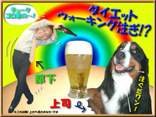 ■しかし、なんだかんだとコレでも忙しい毎日~インストラクターに『お腹スッキリ計画プログラム』を作って頂いたのだが、思うようにジムに通えない。<あ~これじゃ、お腹スッキリにならないわ!>とは~思わない。ジムなんぞに通えなくても~人間【やる気】になれば、ドコでも出来る!と私は思うのである。なので私はやった。いや、やっている。そのいくつかを御紹介しよう。まず、会社出勤前のランニング!・・・は、朝早く起きれないのでやらない(キッパリ)。しかし、出勤途中の車の中では背もたれを倒し、腹筋しながら運転をしている(携帯で話すより危ないじゃねーか!)。また会社に着いたらコーヒーに砂糖は入れず、椅子は座っているようで~実は空気椅子(仕事出来んのか!)。帰ってきたら通販で買ったエクササイズマシンに精を出し、また『速攻!男のボディ改造術』なる本まで読みあさり【アイソメトリック・トレーニング】を取り入れた!(興味のある方は聞いてね!お教えします♪)家の中では【初恋ダイエットスリッパ】じゃないが、つま先立ちに徹し、家の電気スイッチは全て足にて点灯。コンビニに行けば~買い物袋が鉄アレイ代わりとなり、将軍(犬)の散歩に行けば~【デューク更家のダイエットウォーキング】で散歩している。ご近所に笑われるが、こっちは至って【真剣】だ。また内臓脂肪(脂肪肝)を取る為、酒を覚えて20年ほど経つが~この度、お初の【禁酒】を試みた。1日の休肝日はあったが~2日間とアルコールが体内を通らなかった日がない私が9日間も禁酒したのである!晩飯は炭水化物を採らず【しじみ汁】のみで過ごした9日間。そして【健康診断】へと突入した。(逆にいつもの健康状態が把握しづらくなるのでは?)・・・それにしても【禁酒】解禁日の酒は美味かった。乾杯の音があんなに爽やかに聞こえるとは!・・・で、ひとつ思った。それは【乾杯】についてである。