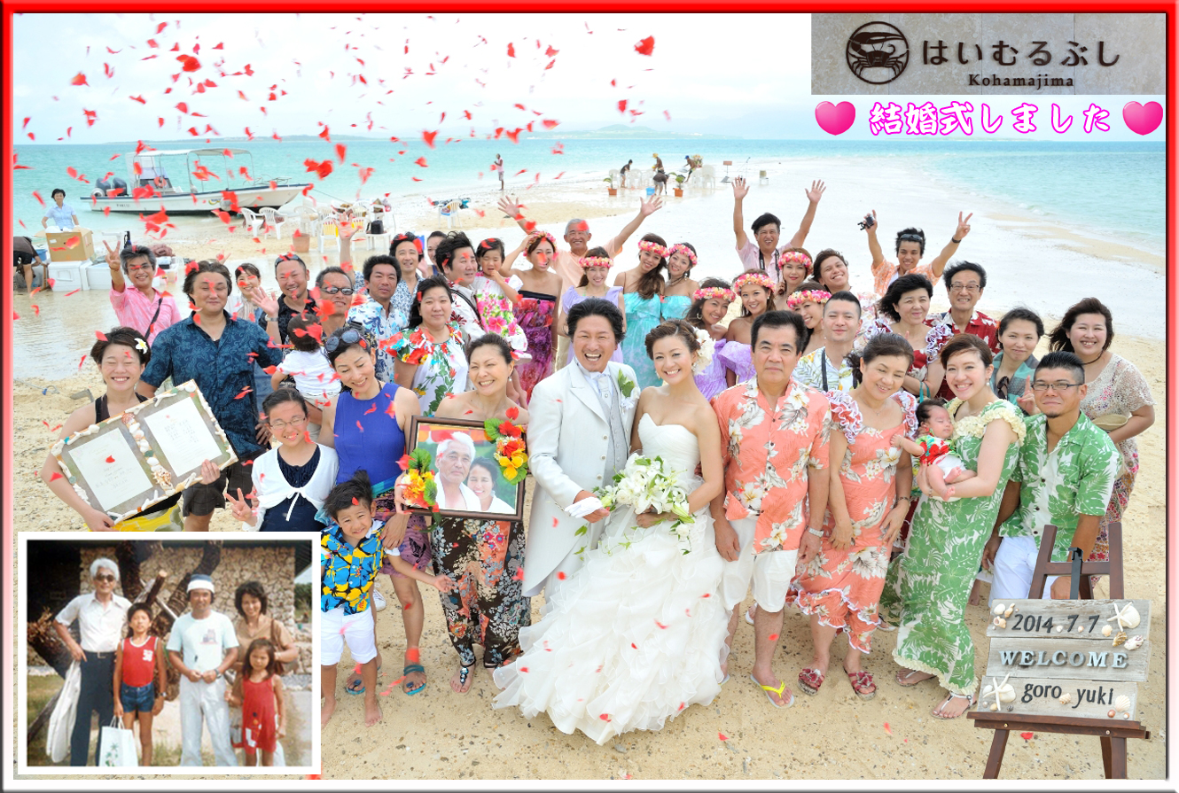 ■結婚式しました。その場所は沖縄から400km南下した石垣島と西表島に挟まれた、NHK連続テレビ小説『ちゅらさん』でも有名となった小浜島(こはまじま)から更に!ボートに乗って約15分。八重山諸島の島々のひとつ・・・サンゴ砂が堆積(たいせき)してできた白い砂浜『浜島』であり、干潮時に三日月の形をして姿を現すことから『幻の島』の愛称で親しまれている島である―――。何故に、そのような最果ての地で挙式を行うことになったのかと云うと~時間(とき)は35年ほど前に遡(さかのぼ)る・・・。 |