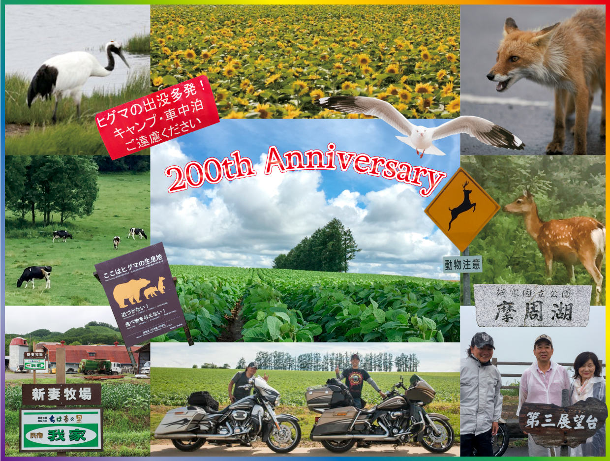 さて、今回は北海道ツーリングのお話し。7月中旬、敦賀湾からフェリーにて苫小牧に上陸!最高の天気で大地を走り抜け~『すすきの』で素敵な夜を過ごし?翌日、道東へと向かう道中~猛烈な雷を伴う豪雨に打たれた。(バチが当たったか?) 所々で道路が冠水。水位は走っていてステップが浸かるほどである。マフラーが水面を「ボボボボ!」と唸っており『ここでエンストしたら、大変なことになる!』と生きた心地がしない最中、ふと霧に煙る道路の先にエゾ鹿がコッチを見てはピョンと、ひとっ跳びで茂みに隠れた。全く人通りというか車の通りも無い、独りぼっちの冠水道路でひとつの生命(いのち)に出会えたことの喜びと『ヒグマじゃなくて良かった・・・』という安心感にホッと一息つくと、今度はソコソコの大きさの雹(ひょう)が降ってきた!同日、関東でもカナリ大きい雹が降ったようで『マジか・・・』と。・・・あんな経験は初めてだった。北海道気象協会の発表によると、この日~1時間降水量の観測史上1位を更新したようだ。『生きてて良かった。』と心底、思えるほどの雨だった。翌日も根室・知床とカッパを着続け、修行僧が如く~前日の雷雨ほどではないが走り続けた。牛や馬はモチロンのこと~エゾ鹿・キタキツネ・丹頂鶴と、時折~目の前を突っ切って来る水鳥たち・・・ヒグマ以外はみんなに出会えた。みんなビッチョビチョに濡れていた。