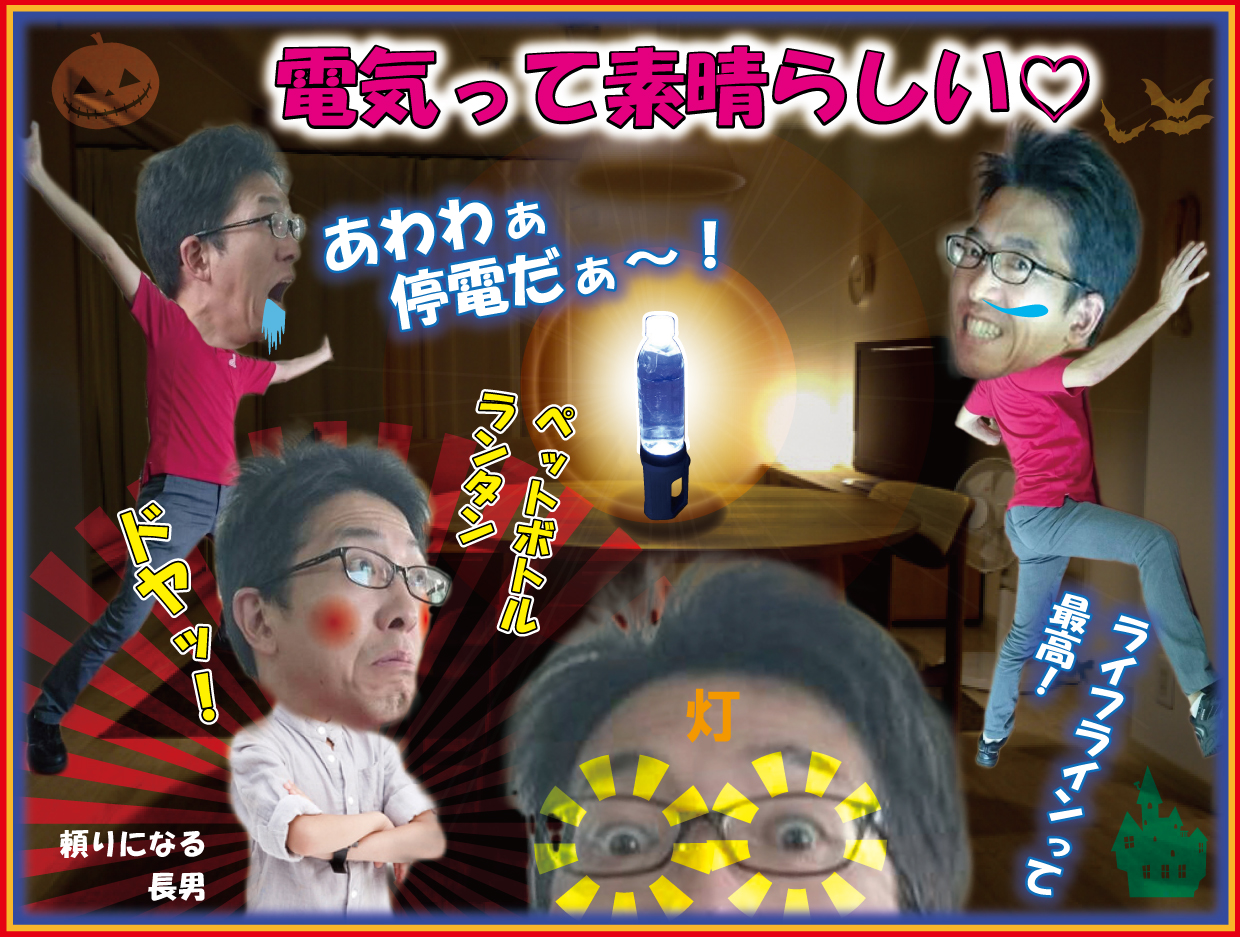 ここ最近は毎年のように異常気象だの猛暑などと騒がれており、何処かしらで最高気温を更新したというニュ-スをよく耳にしました。そして今年は台風の当り年!8月だけで8個も発生しており、実に14年ぶりの事だそうです。この9月にも大きな台風が2個、東海地方に上陸しました。どちらも日本列島を縦断し各地に多大な被害をもたらしましたが、私の住む『愛知県豊橋市』では9月末に発生した台風24号により10万戸以上が停電となり復旧に4日以上かかる所も有りました。突然の停電に懐中電灯すら準備していない我が家は大慌て!数年前に用意したはずの防災グッズが何処にあるか分からない・・・。スマホの明かりを頼りにやっと見つけた防災リュックの中では懐中電灯・サイレン・自家発電機能を備えた多機能ラジオも電池の液漏れを起こしている有様・・・。そんな中、懐中電灯も不足しており暗かった室内を長男がおもむろに空のペットボトルに水を入れて懐中電灯で照らし簡易ランタンを自作、部屋全体が明るくなり重宝しました。その役は私がやって家族から「お父さん!頼りになる~♪」なんて言われたかったなと思いつつ、成長した息子を頼もしく思いました。幸いにも我が家ではガス・水道が使えましたので、トイレと食事は事なきを得ましたが、電気が使えない事がこんなに不便なのかと痛感するとともに、防災時の【備えの大切さ】・・・身をもって感じました。