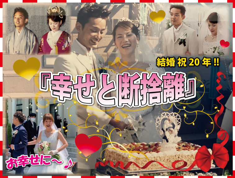 私は今年、結婚して『20年』を迎えます。27歳で結婚して早20年!早いものですね!一応毎年ささやかなお祝いをしてきましたが、皆さんは『結婚記念日』に15年までは1年単位、それ以降は5年単位でそれぞれに呼び名があるのはご存じでしょうか?イギリスが発祥のようですが、それを見ると20年目は磁器婚式(陶器婚式)となっていますので、今年は家族お揃いの陶器食器でも購入したいと思っています。20年もこんな私と一緒に居てくれる妻には【感謝】しかありません。仕事の理解、色々なお付き合いでの理解、お酒の好きな私の数ある失態にも←反省しろ!大きな愛で見守ってくれました。今は息子達が高校生と中学生になり、毎朝のお弁当作りや、部活動の大会・身体のケア・塾などの送迎で妻が常にバタバタ状態で、今まで何の手伝いもしてこなかった私もさすがに協力しないとこのままではいけないと思い、風呂掃除や洗濯物をたたんだり、ゴミ出しなど出来る時にはやるようにしています←今頃かい!これからも宜しくお願いします!